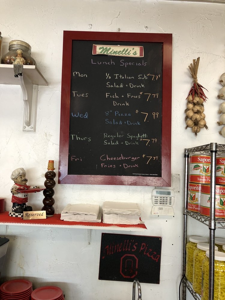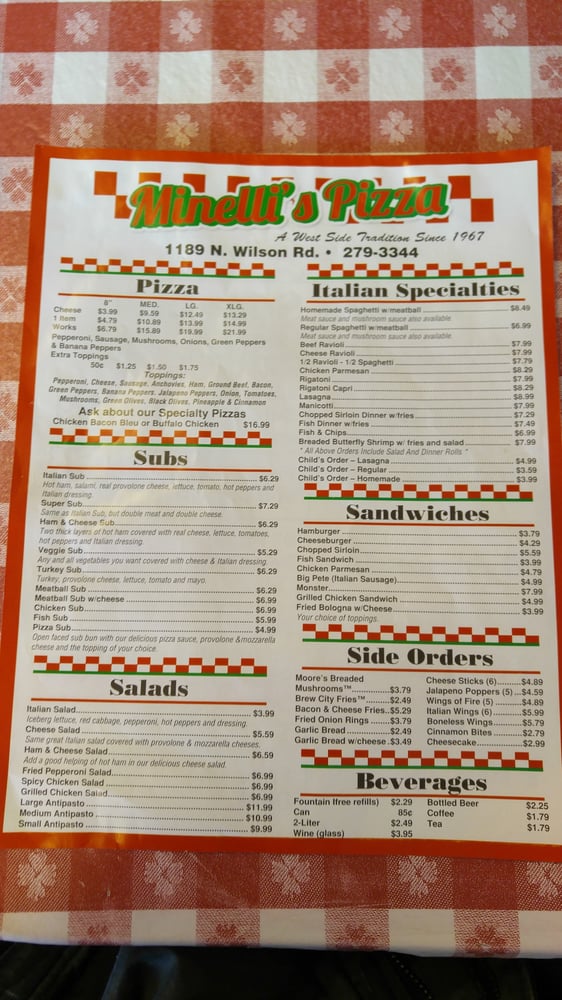 Introducing Minelli’s Pizza, a casual Italian eatery located at 1189 N Wilson Rd in Columbus, OH. This cozy restaurant offers a range of delicious pizzas, including classic cheese pizza in various sizes and a unique cauliflower crust option. Their specialty pizzas, like the Works Pizza with pepperoni, sausage, and an array of veggies, are a must-try. With options for vegetarians and a family-friendly atmosphere, Minelli’s Pizza is a great choice for any occasion. The restaurant also provides delivery, takeout, and reservations, making it convenient for customers. Whether you're dining in or ordering out, Minelli’s Pizza is sure to satisfy your cravings for authentic Italian flavors.